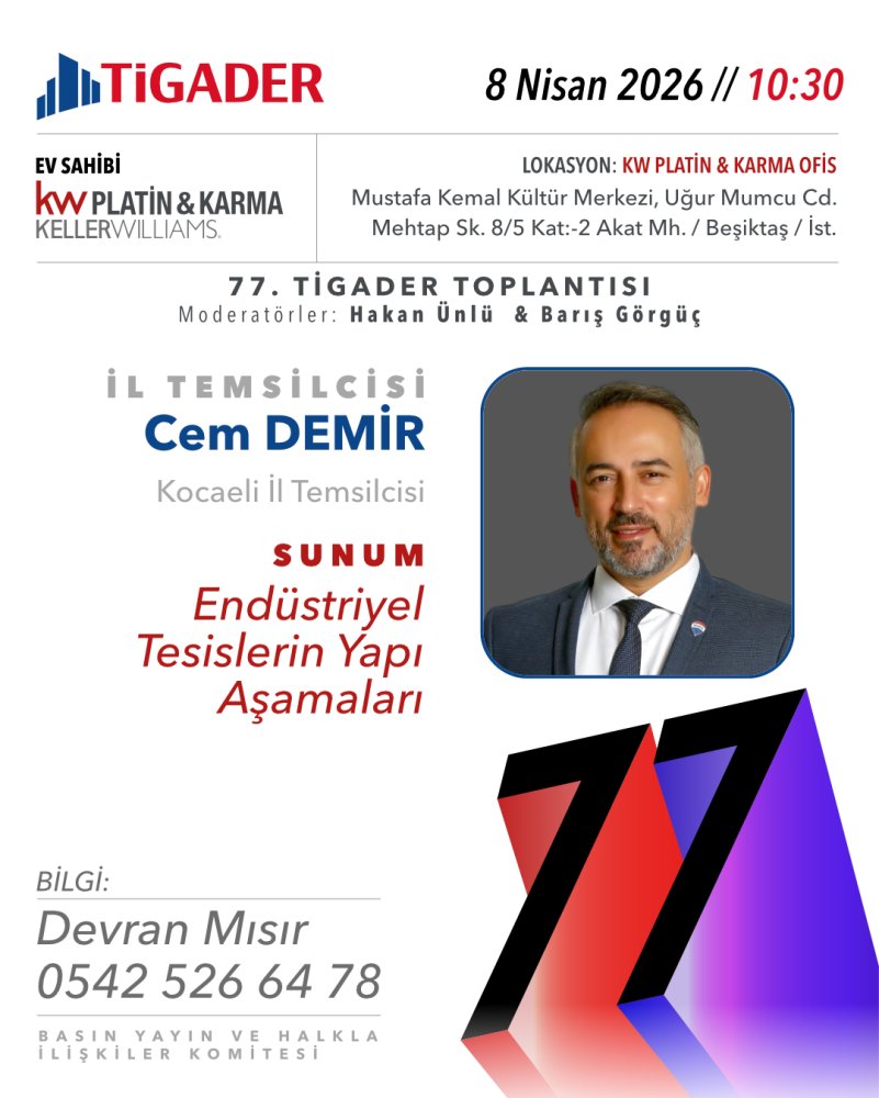77. Tigader toplantımız 8 Nisan 2026 tarihinde yapılacaktır.