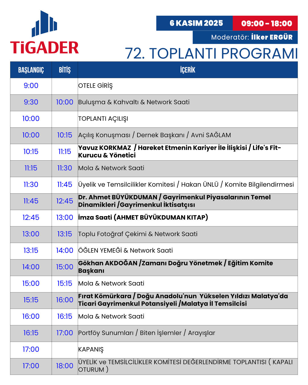 72. Tigader toplantımız 6 Kasım 2025 tarihinde yapılacaktır.
